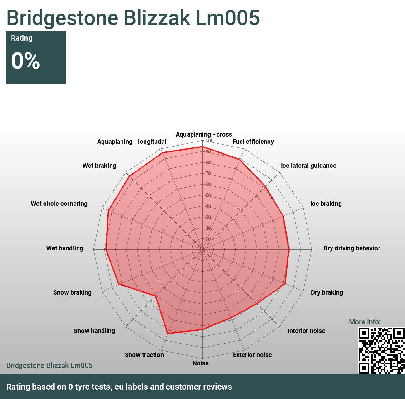 Bridgestone Blizzak Lm005 wird in 21 gemacht, angefangen von 185/60 R15 bis hin zu 265/30 R21.